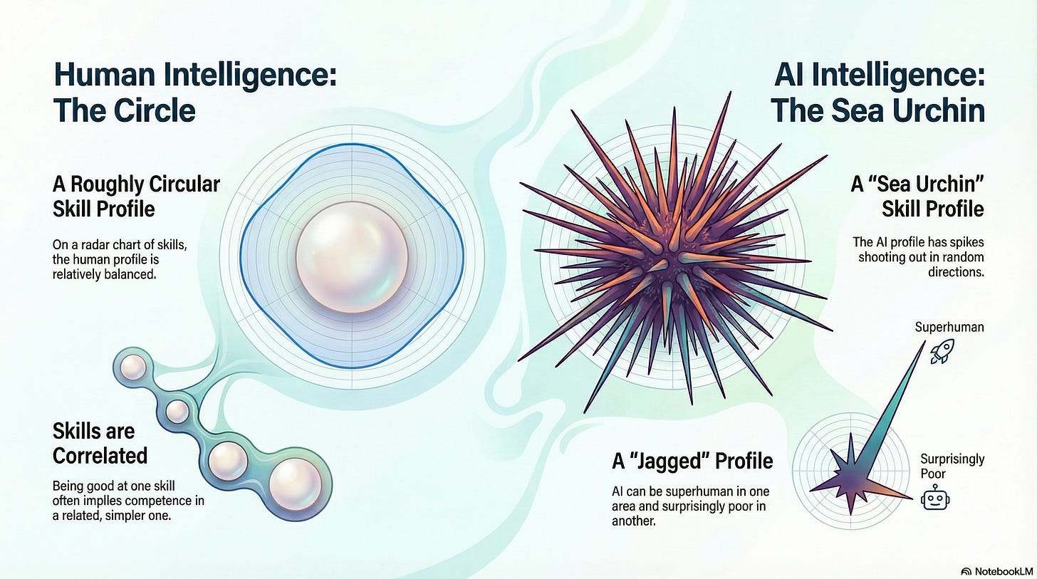 That’s the “jagged” part. The intelligence profile isn’t smooth. It’s spiky and unpredictable.